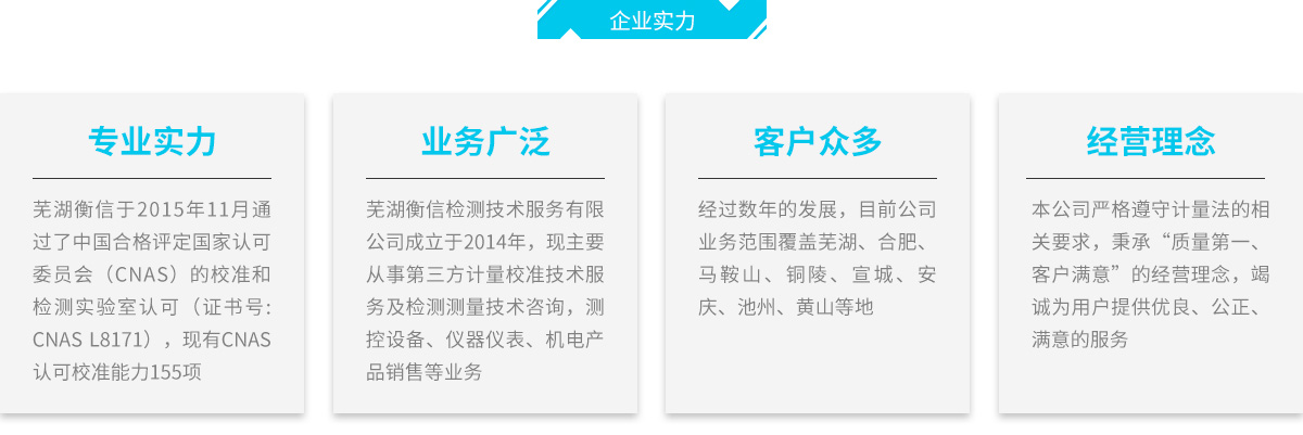 蕪湖衡信檢測(cè)技術(shù)服務(wù)有限公司 版權(quán)所有 免責(zé)聲明 皖I(lǐng)CP備2021011915號(hào)-1 營(yíng)業(yè)執(zhí)照技術(shù)支持:網(wǎng)新科技(www.ibw.cn)